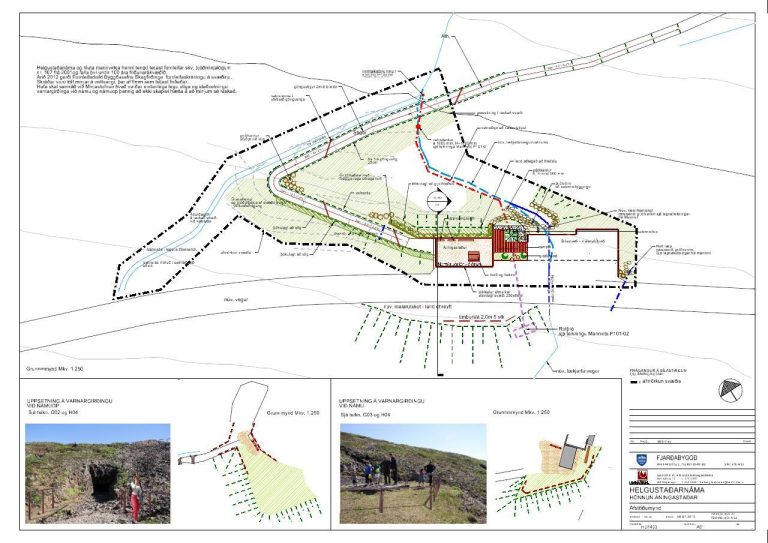 Auk göngustígagerðar og yfirborðsfrágangs, felur verkið í sér aðstöðuhús með salerni, bílastæðisgerð, pallasmíði, skiltamerkingar og uppsetningu á varnargirðingum við námu og námuop. Þá munu grjóthleðslur, þökulagðar með úthagatorfi, prýða áningarstað Helgustaðarnámu, sem verður lagður náttúrugrjóti og með borðum og bekkjum fyrir gesti staðarins.
