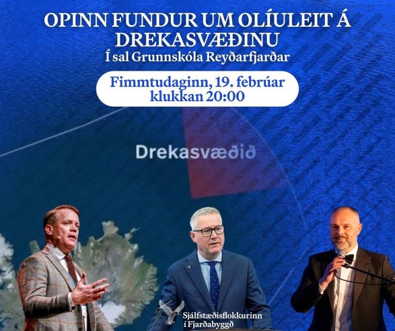 Fimmtudaginn 19. febrúar kl. 20:00 verður haldinn opinn fundur í sal Grunnskóla Reyðarfjarðar þar sem rætt verður um olíuleit á Drekasvæðinu og áhrif hennar á Ísland og Austurland.